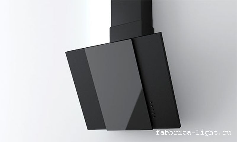 Ширина: 600 мм. Цвет – черный. Материал - металл / черное стекло. Производительность – 800 куб м/ч. Управление/ количество скоростей – кнопочное/3. Освещение – галогеновые лампы 2х20 Вт.